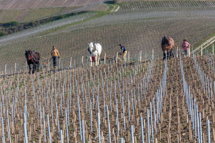 - Les travaux viticoles réalisés en traction animale se font sur de petits et grands domaines avec toujours le souci de respecter le Cheval, l’Homme et la Terre. Le pas du cheval ralentit l’homme, l’oblige à prendre le temps de s’adapter à la terre.